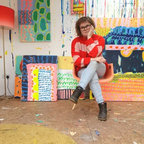 Jessie is a contemporary abstract artist whose vibrant mixed media artworks explore emotion through colour, form, and texture. Working with an intuitive, process-led approach, Jessie’s abstract art uses expressive mark-making as a visual language — creating compositions that evoke movement, feeling, and joy.